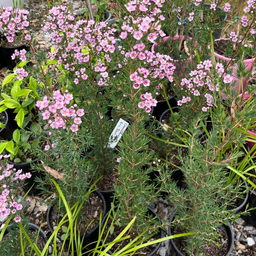 Eric John Wax Flower is a charming, compact shrub renowned for its vibrant, aromatic flowers and glossy evergreen foliage. Its dense, rounded growth habit makes it an excellent choice for hedging, container planting, or rock gardens. The plant thrives in poor soils and is highly tolerant of drought and coastal conditions, making it a versatile and low-maintenance addition to any landscape. Throughout the year, it offers bursts of colorful flowers, adding visual interest and fragrance to gardens and patios.