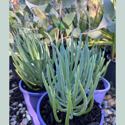 Narrow Leaf Chalksticks is a low-growing, hardy succulent with slender, blue-green cylindrical leaves that form a neat, spreading mat. Its cool, architectural foliage adds a modern, sculptural texture to rockeries, groundcovers, coastal gardens, and succulent mixes.