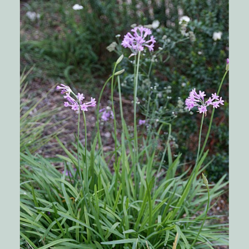 Tulbaghia violacea ‘Society Garlic’ is a clumping, perennial evergreen with narrow, grey-green leaves and airy stems of delicate mauve to lilac flowers. Its attractive foliage, fragrant garlic-scented leaves when crushed, and long flowering season make it a versatile, low-maintenance choice for borders, mass plantings, cottage gardens, and containers.
